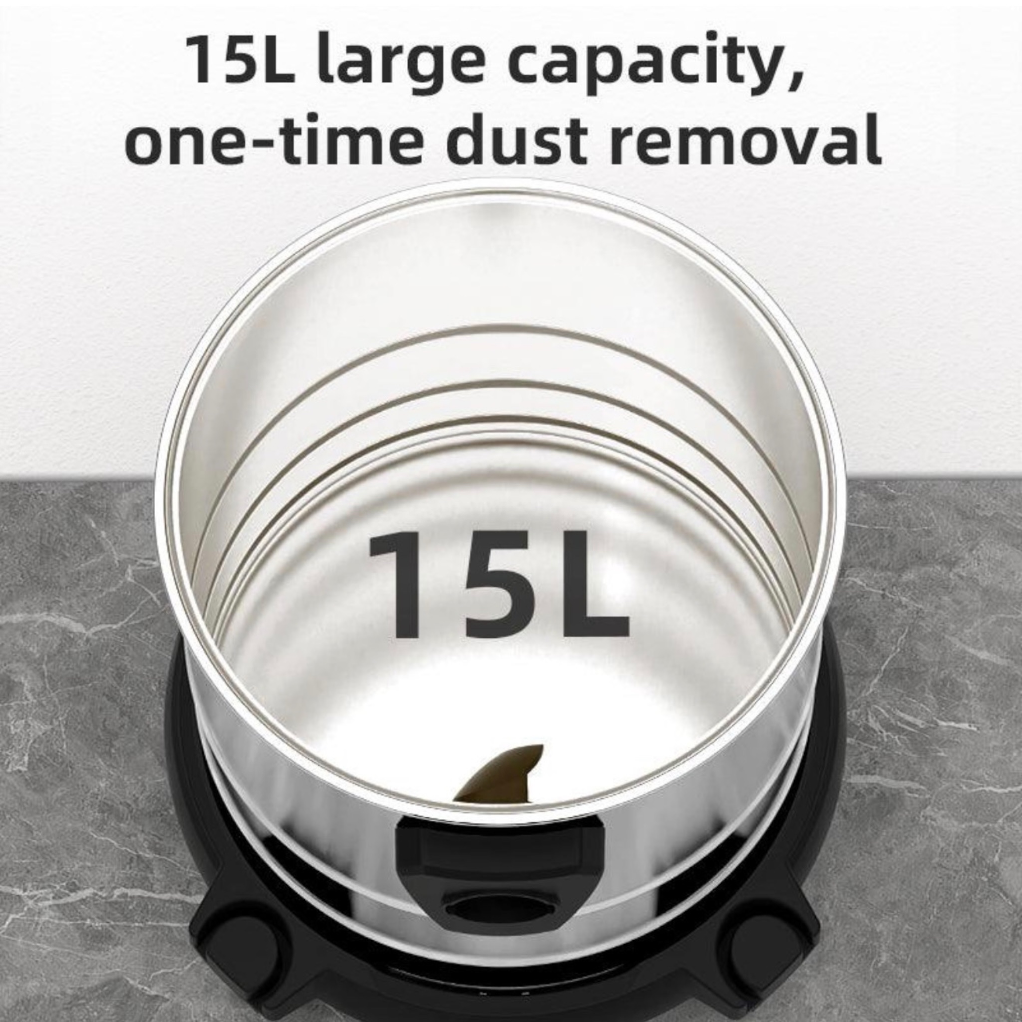 Capacity: Large 15 L stainless-steel drum—reduces need for frequent emptying