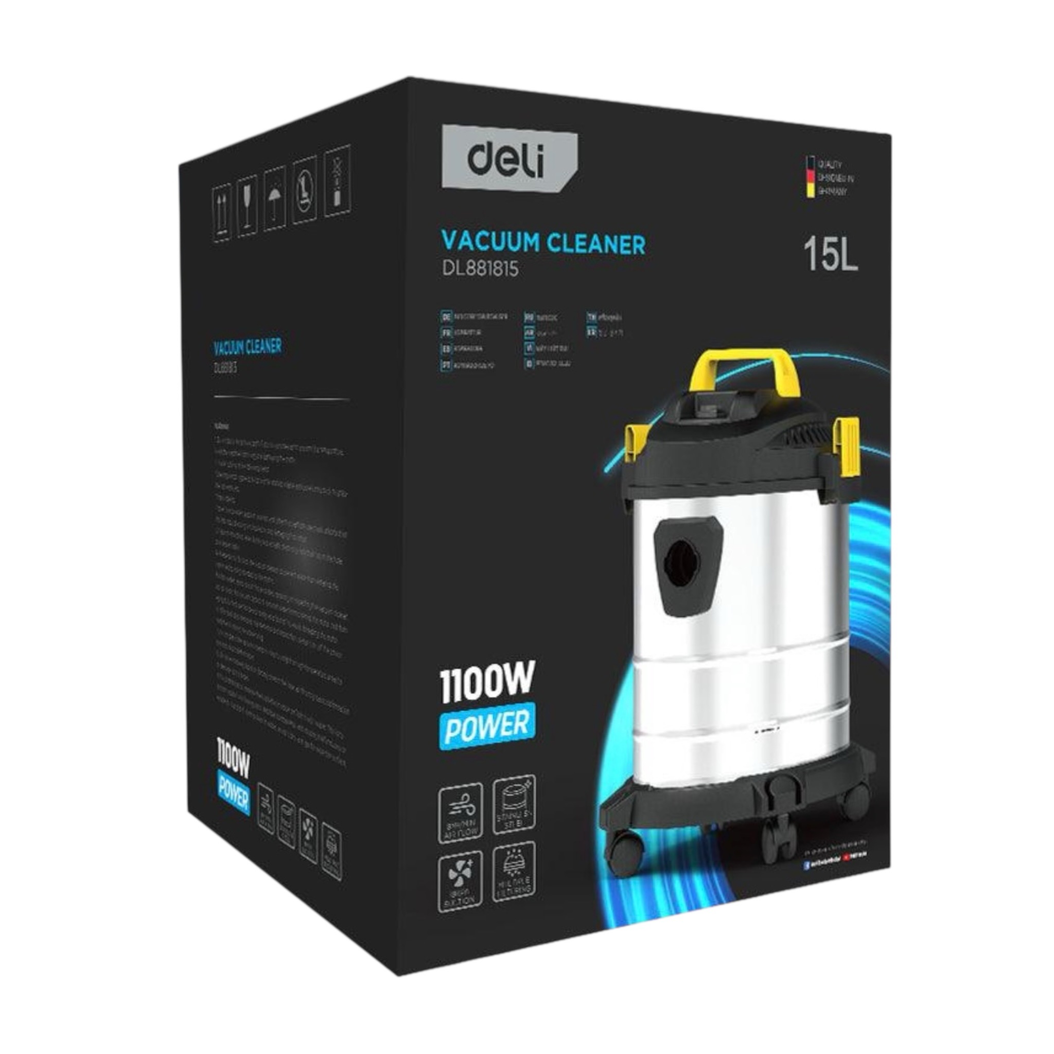 he DL881815 vacuum cleaner from Deli Tools Lebanon is a versatile, industrial-grade machine suitable for both wet and dry cleaning tasks. Designed in Germany, this robust 15 L stainless-steel barrel vacuum delivers powerful suction (up to 1,700 Pa), with dry vacuuming, liquid pickup, and blower functions. Ideal for homes, workshops, garages, and commercial spaces, it combines strong performance with easy maneuverability and reliable build quality