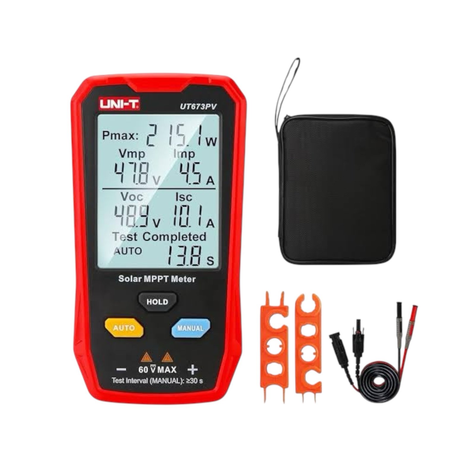 - Safe & Durable: Safety Class CAT 0 100V. What you get: 1 x UT673PV Solar MPPT Meter, 1 x paper Manual, 1 x Cloth Bag, 1 x MC4 wrench Tool, 1 x MC4 test lead
